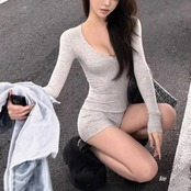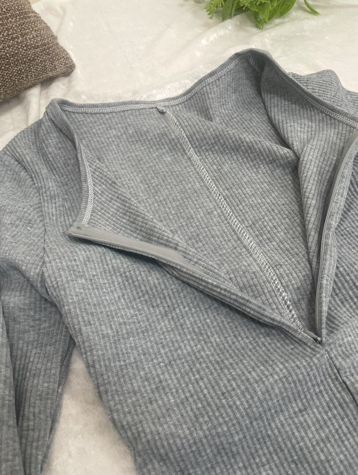 【セクシーウェア】フロントチャックボディスーツ グレーy1