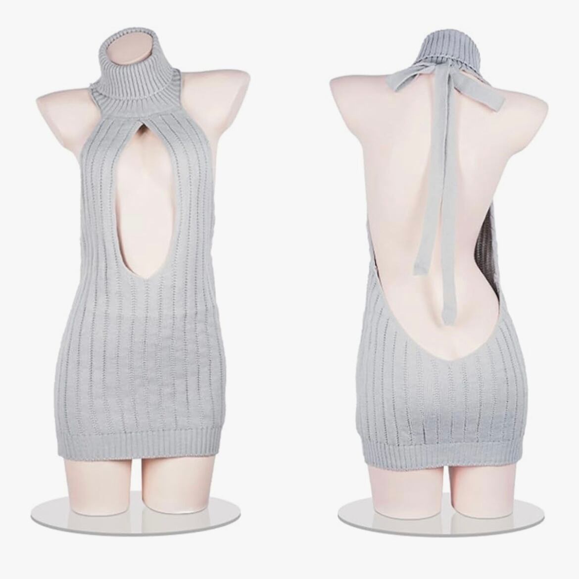 背中から胸元まで一気に開いた、大胆すぎるニットドレス。